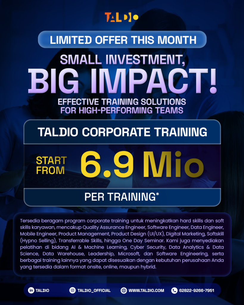 Taldio menyediakan program pelatihan yang dirancang untuk perusahaan yang ingin membangun tim penjualan dan pemasaran yang lebih efektif dan berdaya saing tinggi. Program ini mencakup berbagai materi penting yang relevan dengan tantangan bisnis modern.
